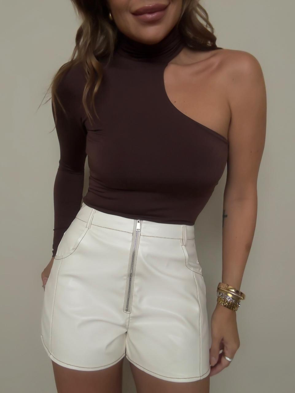Moderna e sofisticada, essa blusa nula manga marrom é a peça perfeita para composições cheias de estilo. Confeccionada em poliamida toda dupla com toque macio e caimento ajustado ao corpo, ela valoriza a silhueta. Seu design assimétrico com uma manga longa e ombro à mostra traz um ar fashionista e elegante na medida certa. A gola alta complementa o visual com charme extra.
