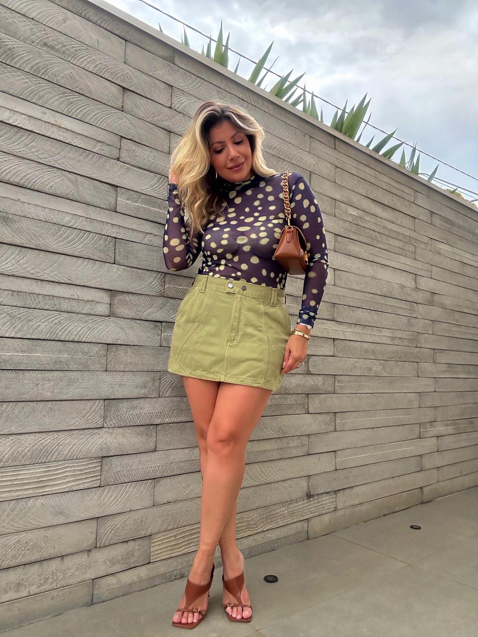 Mini saia em sarja verde da animale jeans, trazendo uma proposta moderna e descomplicada. O modelo possui recortes estruturados que valorizam o caimento, cós com passantes e fechamento frontal por botões e zíper. Versátil, combina com camisas, tops ou tricots para criar looks cheios de personalidade.