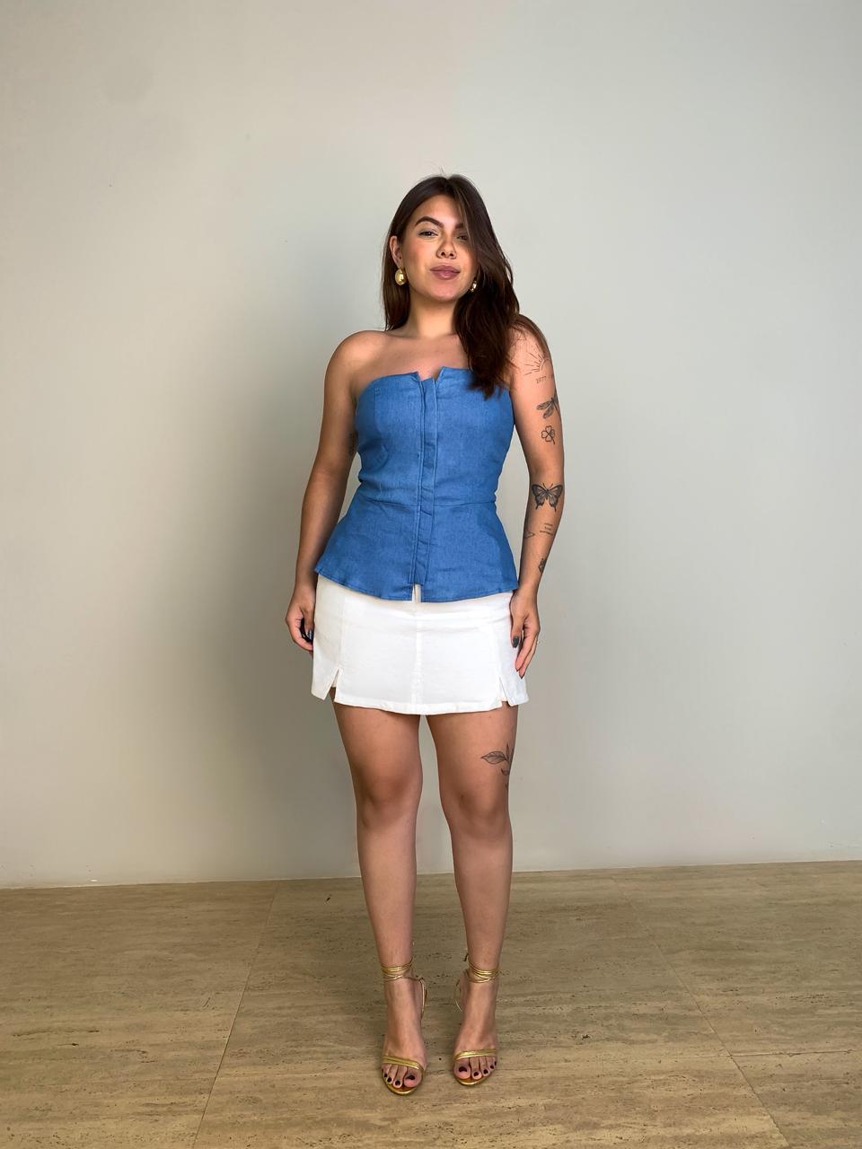 Short saia alfaiataria off white com um design moderno e versátil. Confeccionado em tecido viscolinho, ele combina o conforto do short com o charme da saia. O modelo possui recortes frontais sutis com pequenas fendas, que adicionam um toque de estilo e leveza à peça. Tem bolsos, fechamento frontal por botão e zíper.
