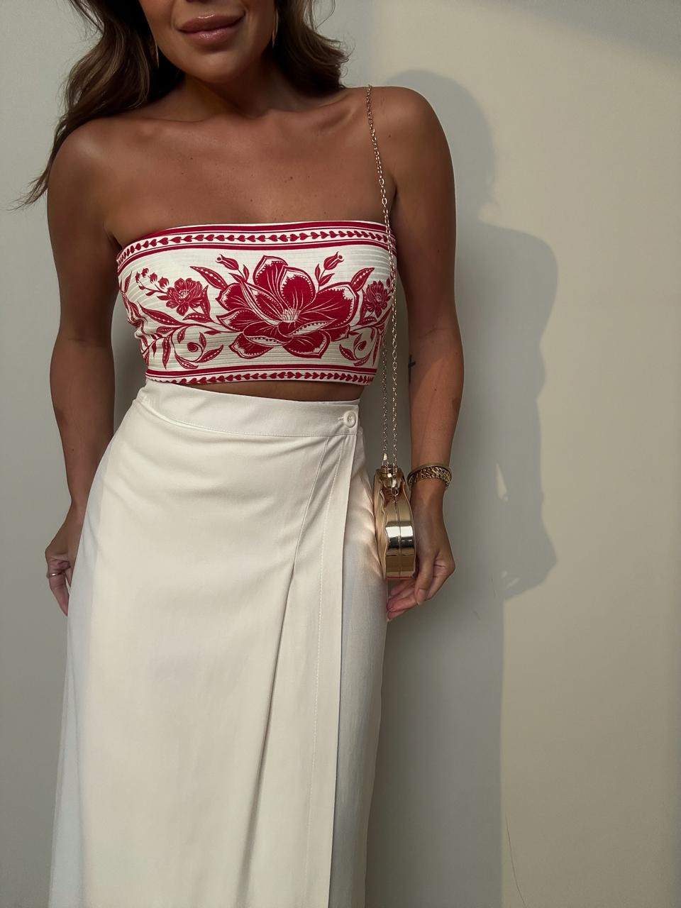 Top farm dupla face, perfeito para compor produções versáteis e cheias de estilo. Com modelagem ajustada ao corpo, ele valoriza a silhueta e traz como destaque a faixa frontal com estampa floral em vermelho, que cria um contraste charmoso e marcante. Por ser dupla face, oferece duas propostas em uma única peça, permitindo variar o look com praticidade. Confeccionado em ribana canelada.