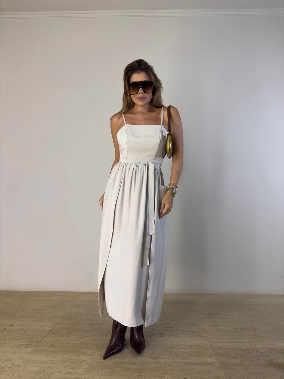 Vestido Midi Transpassado Fiorenza Bege Acinzentado